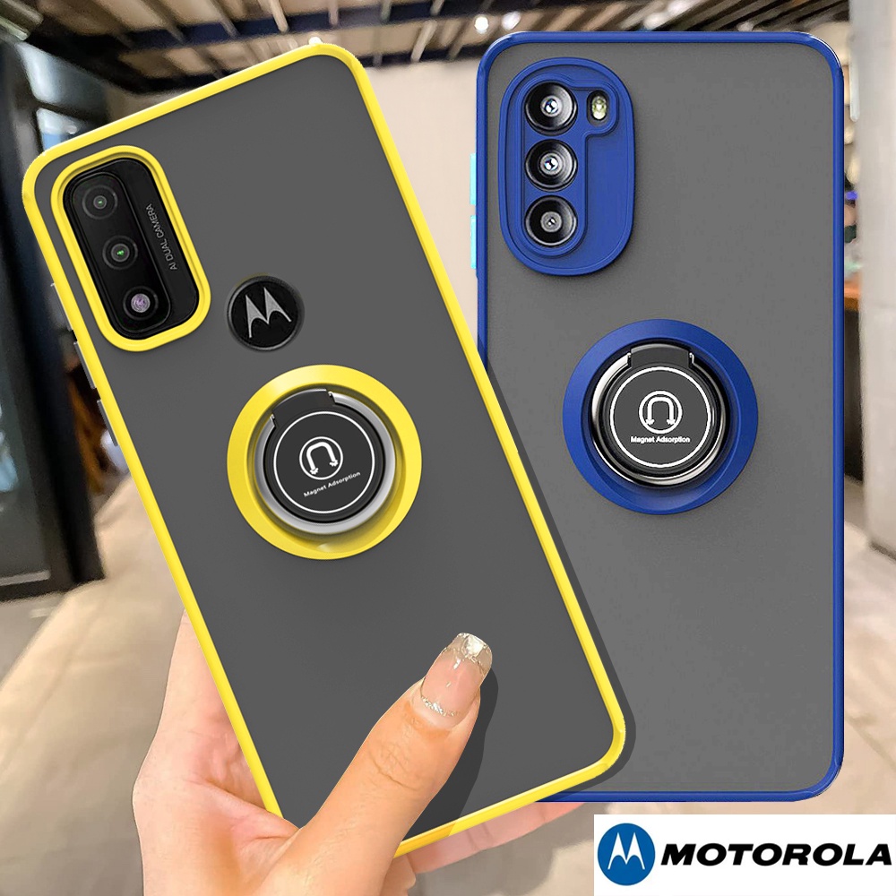 Motorola G22 G32 G60 G60S G71 G10 G20 G30 G50 G51 G52 G200 E20 E40 Edge 30 Pro Edge 20 Lite Edge 20 Pro Capa de telefone translúcida fosco resistente a quedas de luxo com suporte giratório de metal