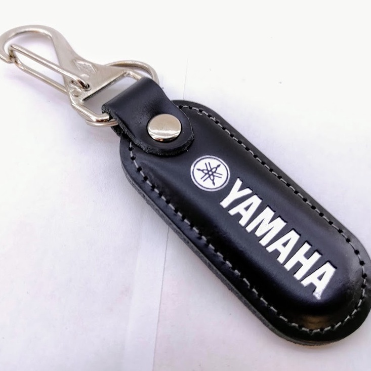 Chaveiro Yamaha Motos em Couro Preto com Mosquetão