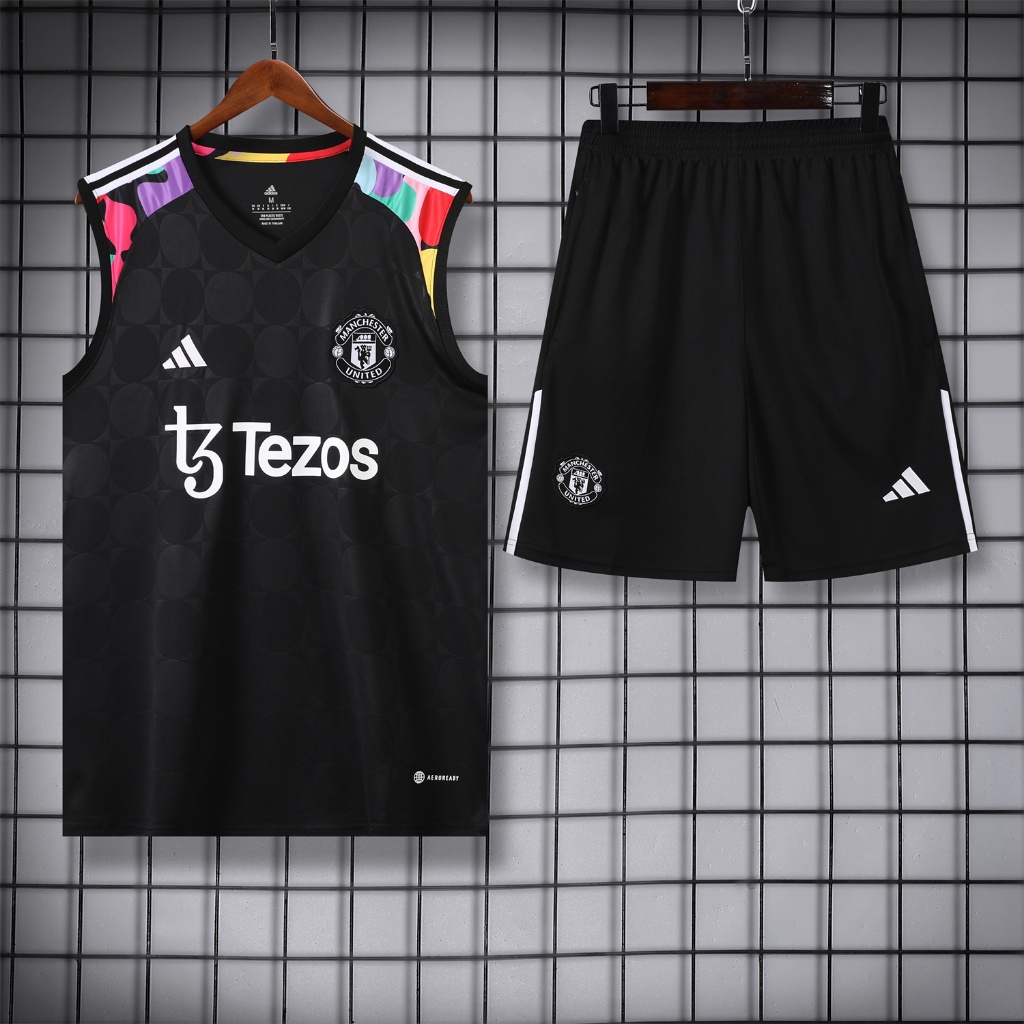 Personalizado Black White Manchester United tezos Fato de treinamento de futebol sem manga regata equipe tailandesa camisa treinamento futebol Conjunto do kit