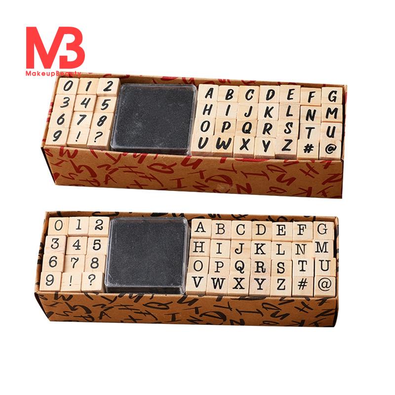 2Sets Alfabeto Selos Vintage Número De Letra De Madeira Símbolo De Carimbo Com Almofada De Tinta Preta Para O Livro De Recortes Do Planejador De Cartões