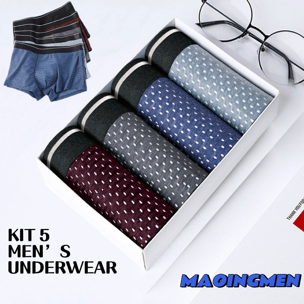 [MAOINGMEN] KIT 5 Cueca Boxer Masculino/Roupas Íntimas Masculinas De Grandes Dimensões/Cueca Bambu de Malha Masculina