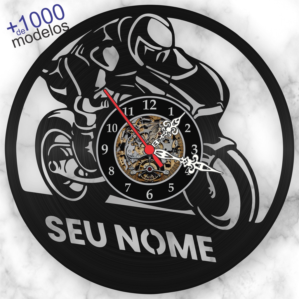 Relógio De Parede Moto Sport Personalizado Nome Motociclista Motoqueiro Disco Vinil Presente dia dos Namorados LP iLustrado Arte Decoração Retrô Moderna