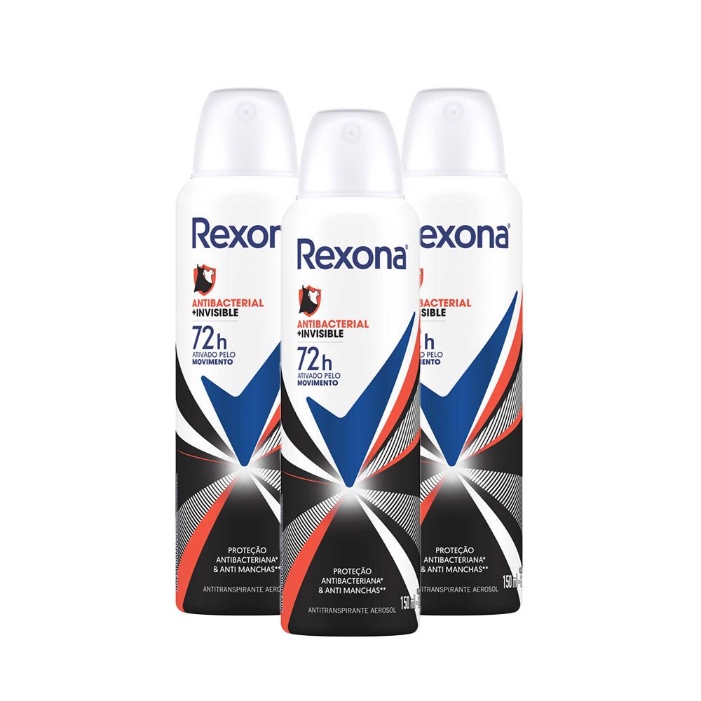 Kit 3 Desodorantes Antitranspirantes Aerosol Feminino Rexona Antibacterial + Invisible 150ml