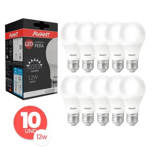 Kit 10 Lâmpadas Led 12w Bulbo E-27 Branca Fria 6500k Avant