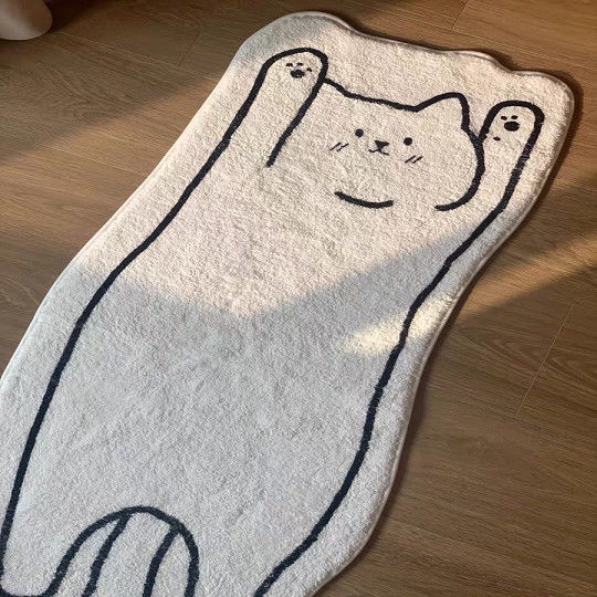 Fofo Desenho Animado Gato Piso Longo Sala De Estar Tapete De Mesa De Café Estilo ins Quarto Infantil Menina Cobertor De Cabeceira Macio Confortável Decoração De Casa Pé Antiderrapante Entrada Para Pés
