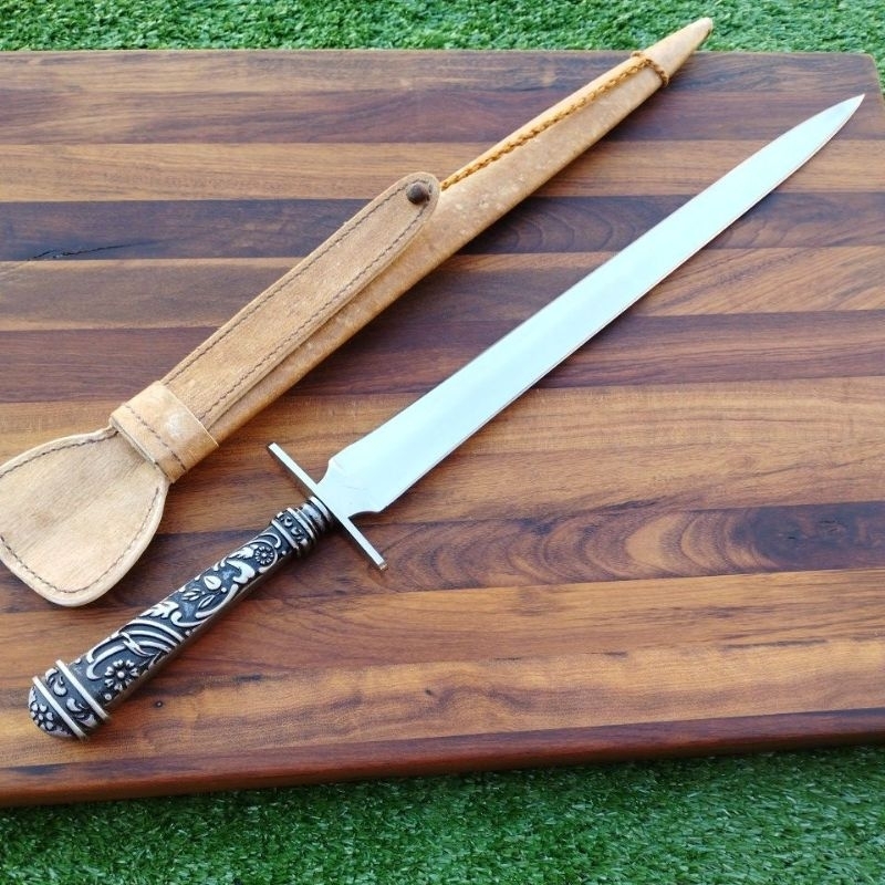 Faca Adaga punhal 12" inox bainha couro cru