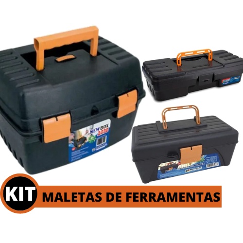 Kit Com 3 Variações Maleta Caixas Plástica De Ferramentas Organizadora Resistente Eletricistas Grande Durável Maletas