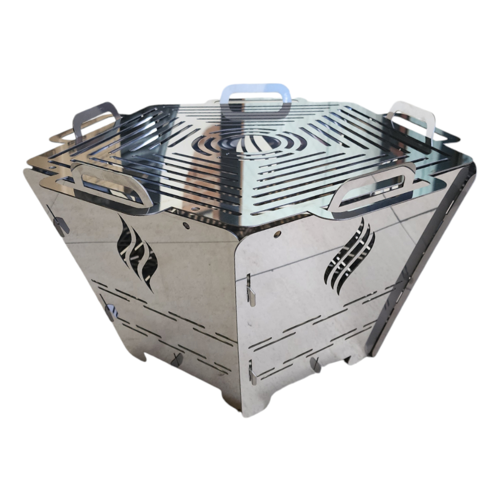 Churrasqueira a Carvão Inox 430 Brilhante Completa Com Grelha Desmontável Portátil Prática Para Casa Camping Pesca Apartamento