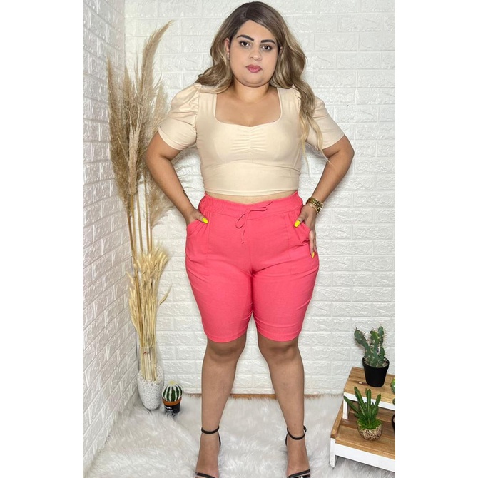 Bermuda Plus Size Feminina Bengaline Moda Verão Plus Size Bermuda Feminina G1 ao G4