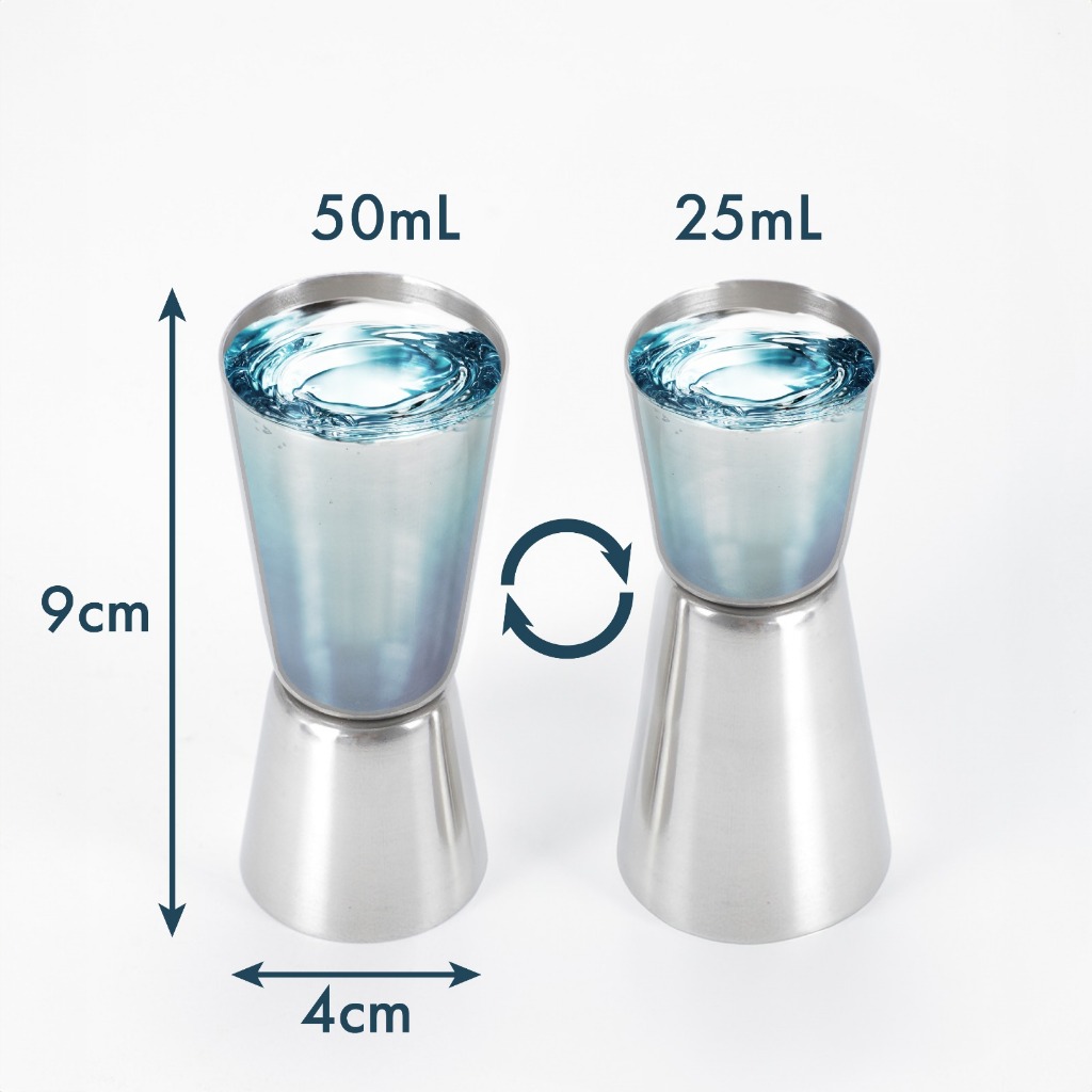 Copo Dosador Medidor Duplo de Bebidas Barmen Inox para Drinks, Coquetel, Dose, Caipirinha 25ml 50ml