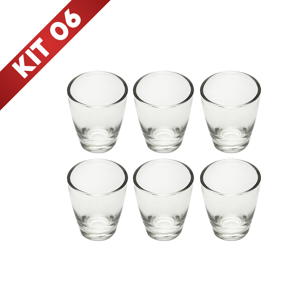 Conjunto 6 Unidades Copo 30ml Dose Shot Whisky Cachaça Cozinha Safira Vidro Drink Bebidas Gym Bar