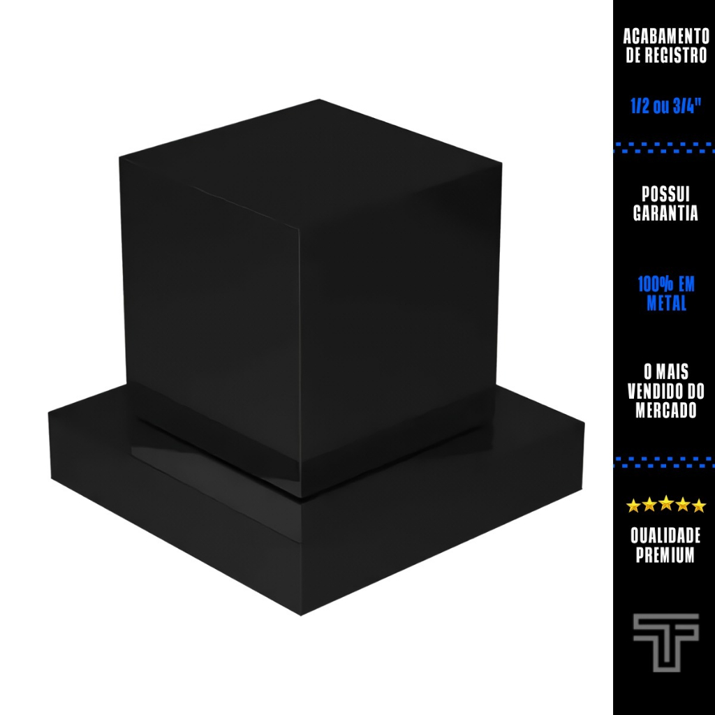 Volante De Chuveiro P/ Acabamento em banheiro Quadrado Preto e Cromado para Registro em Geral anti Choque