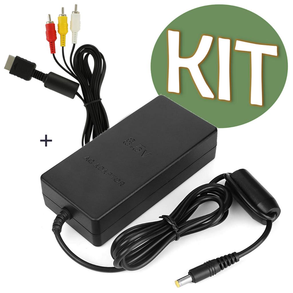 Kit Ps2 Fonte Compatível Ps2 Slim Bivolt + Cabo Av Rca Áudio Vídeo