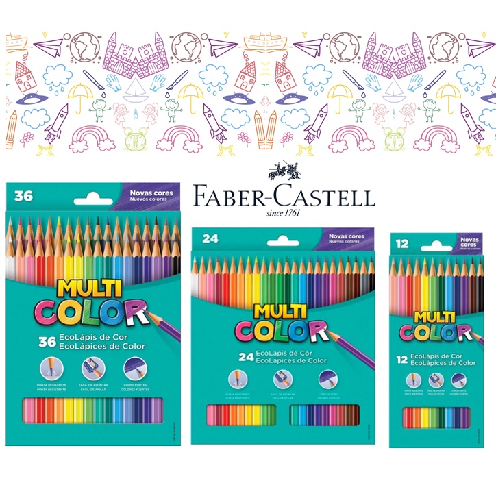 Lápis De Cor Multicolor Cores Ecolapis Faber Castell 12 -24-36 cores