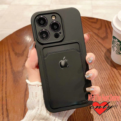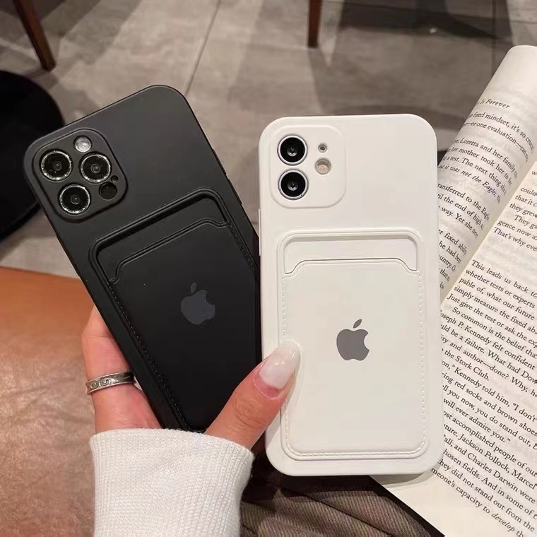 Kl STORE celular Porta-cartões de Silicone capinha iphone 11 12 13 14 15 pro max Carteira à prova de choque Square Edge Duro capinha