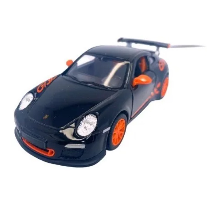 Miniatura Porsche 911 GT3 RS 2010 Kinsmart 1/36 Metal e Fricção Preto/Laranja
