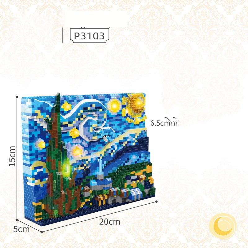 Pintura Mundialmente Famosa Van Gogh Compatível Com Lego mini Blocos De Construção De Partículas The Starry Night/Great Wave off Kanagawa