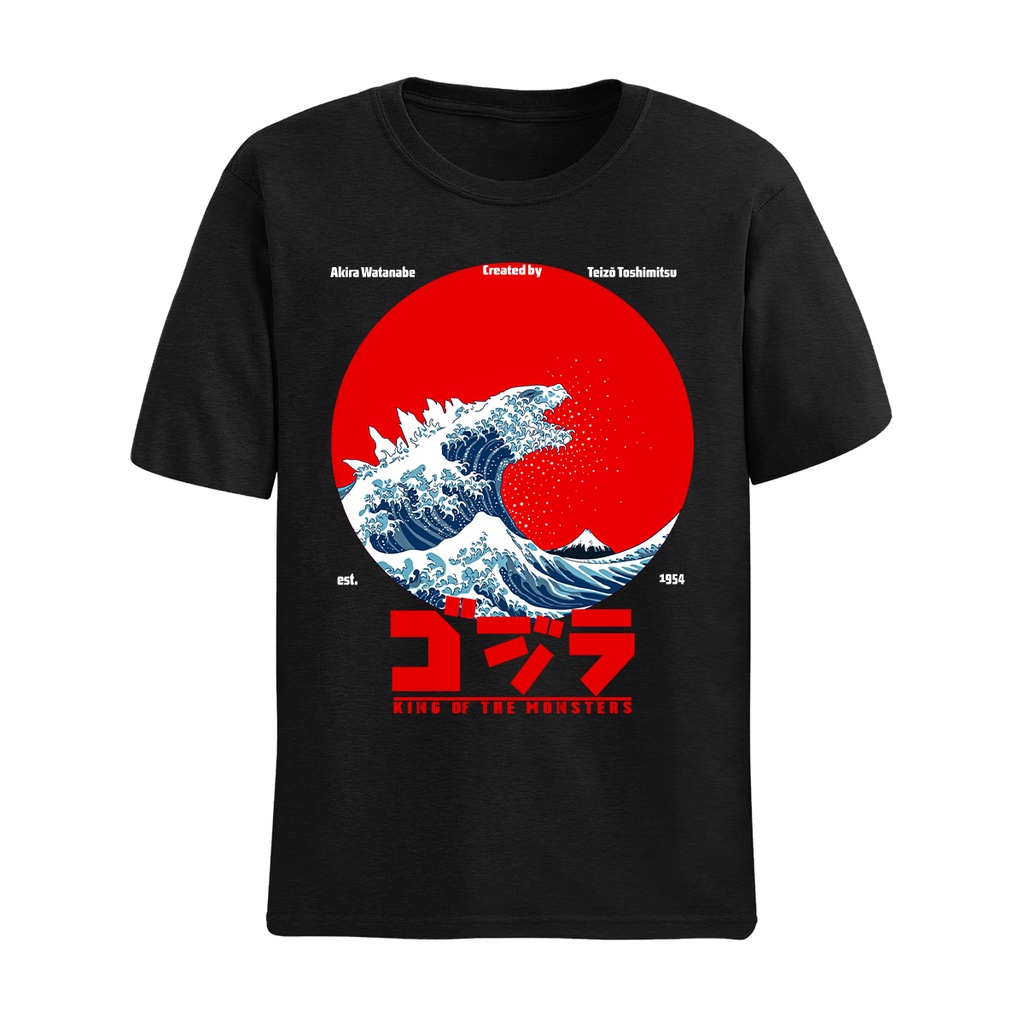 Camiseta Camisa Básica Algodão The Great Godzilla off Kanagawa Ukyoe Oceano Unissex Malha Premium