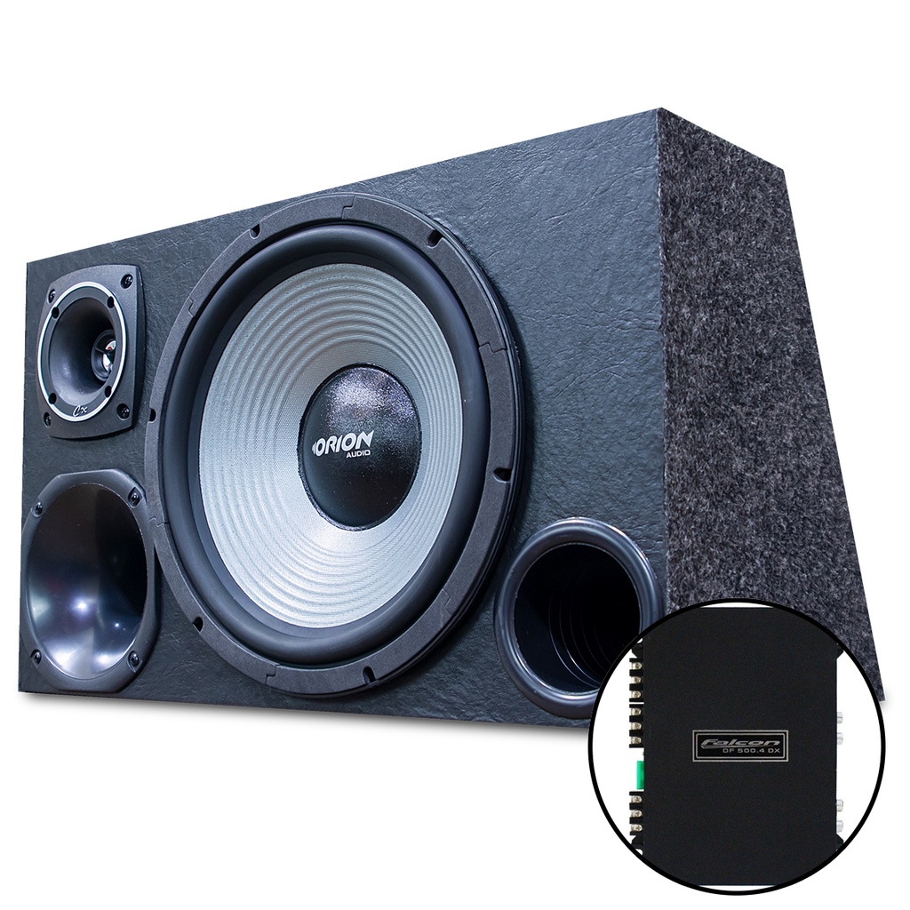 Caixa Trio Som Automotivo Falante 12 Sub + Modulo Amplificador Falcon 500w Rms 500.4