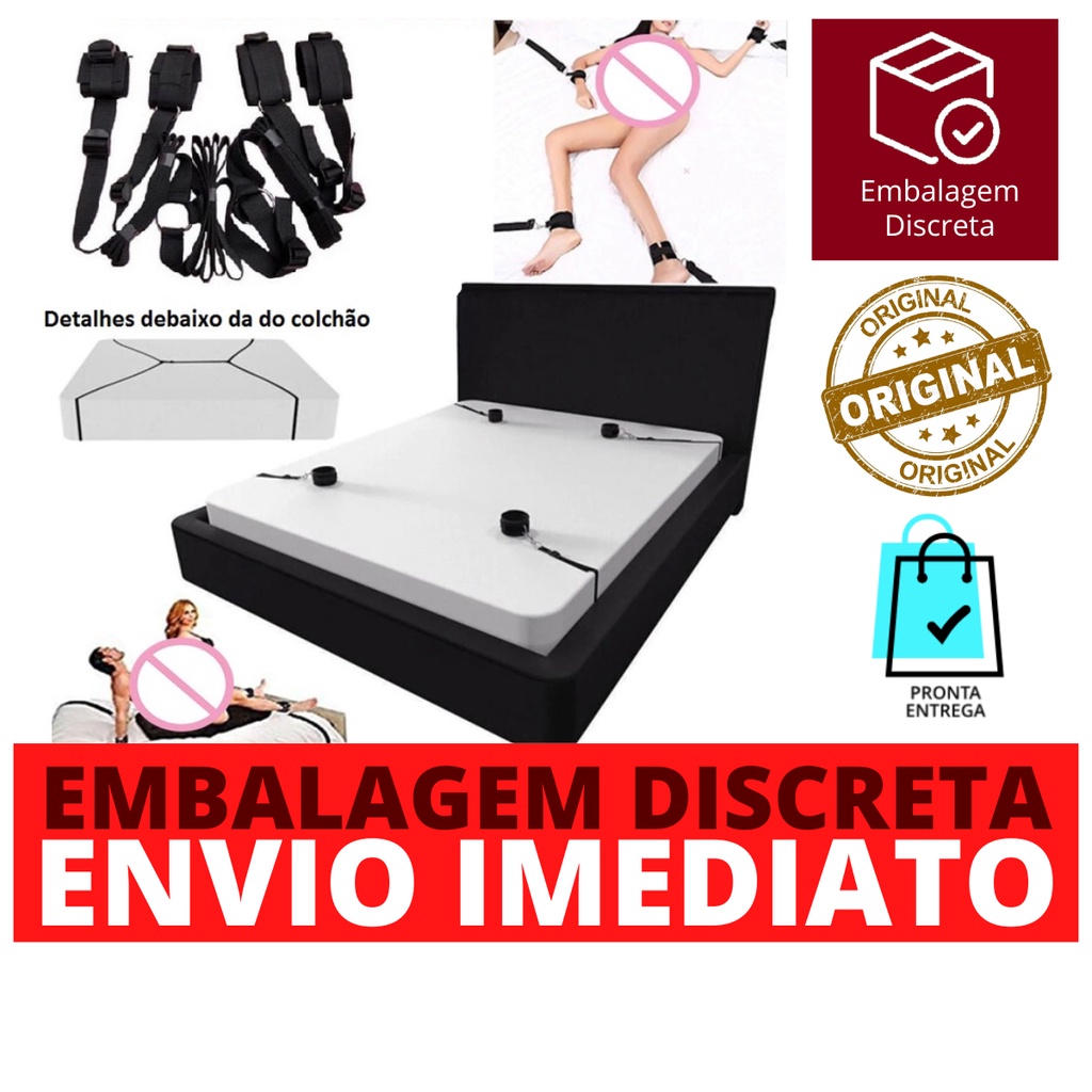Kit Tiras Para Prender Na Cama Com Algemas Removíveis Bondage Sex Shop Bdsm