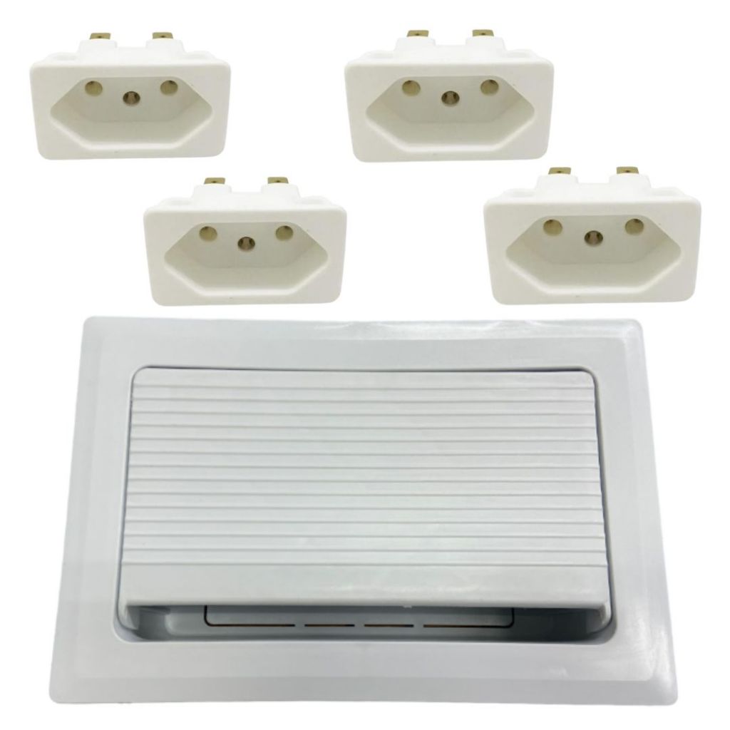 CAIXA DE TOMADA P/ EMBUTIR EM MESA + 4 MÓDULOS TOMADAS