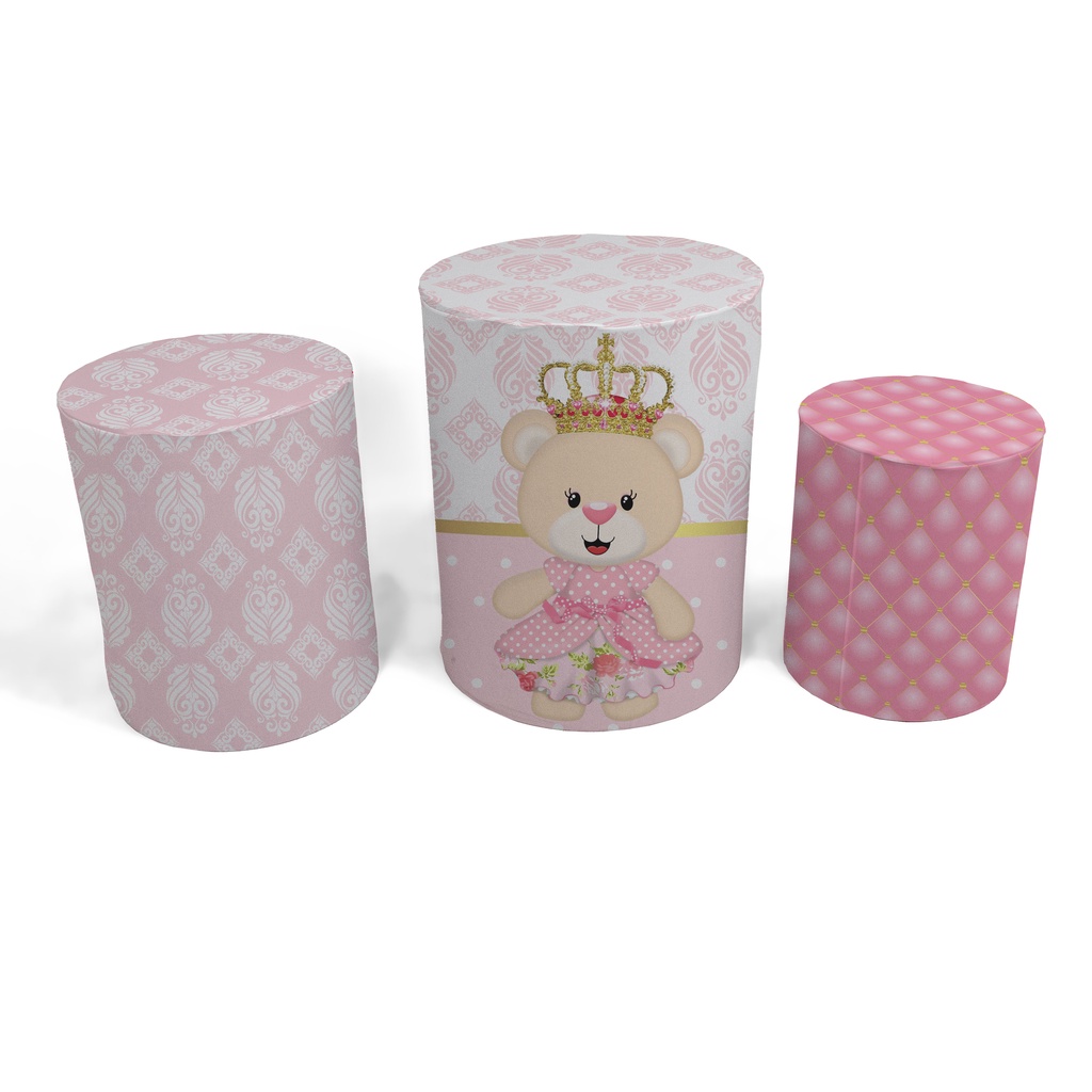 Kit Trio Capa De Cilindro Em Tecido Para Decoração Festa Tema Ursinha Realeza