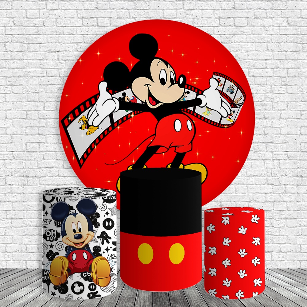 Kit Capa de Painel Redondo + Capa Trio de Cilindro Em Tecido Mickey Minnie Disney Castelo Desenho