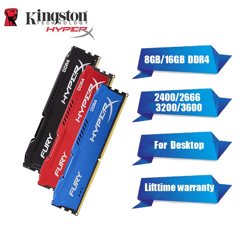 【 Envio Rápido 】 Kingston Hyperx Fury DDR3 DDR4 4GB/8GB/16GB 1600MHz 2400MHZ 2666MHZ 3200MHZ Memória PC Ram Dimm 288 Pinos