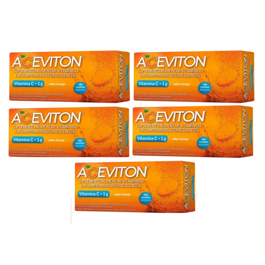 Kit com 5 Vitamina C Aceviton Cimed 1g 10 Cpr Efervescentes
