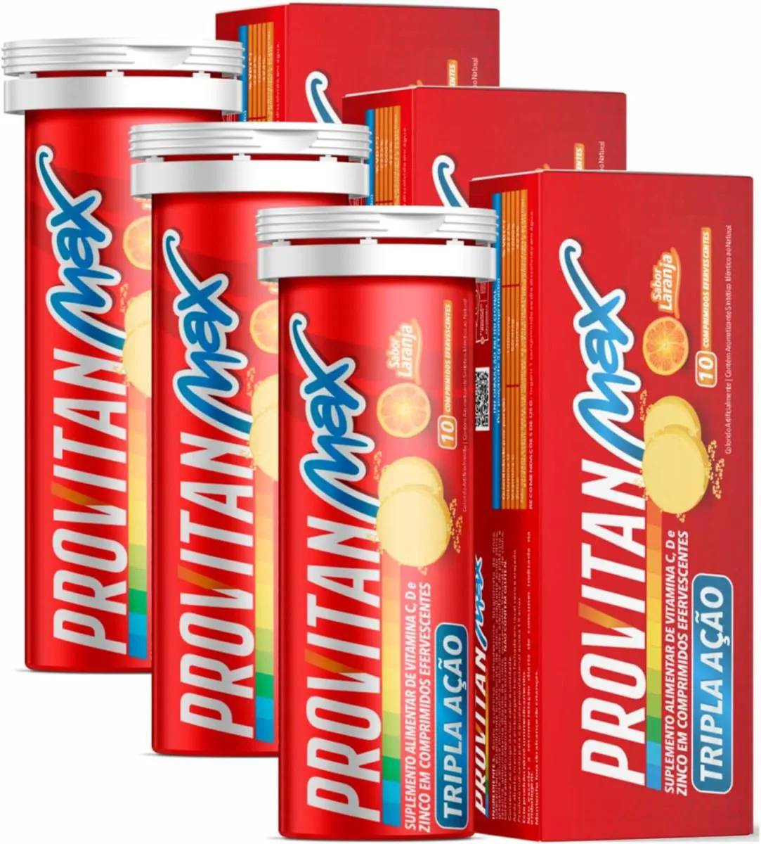 KIT COM 3 PROVITAN MAX VITAMINA C, D E ZINCO EM 10 COMPRIMIDOS EFERVESCENTES DE 1000MG PROMEL