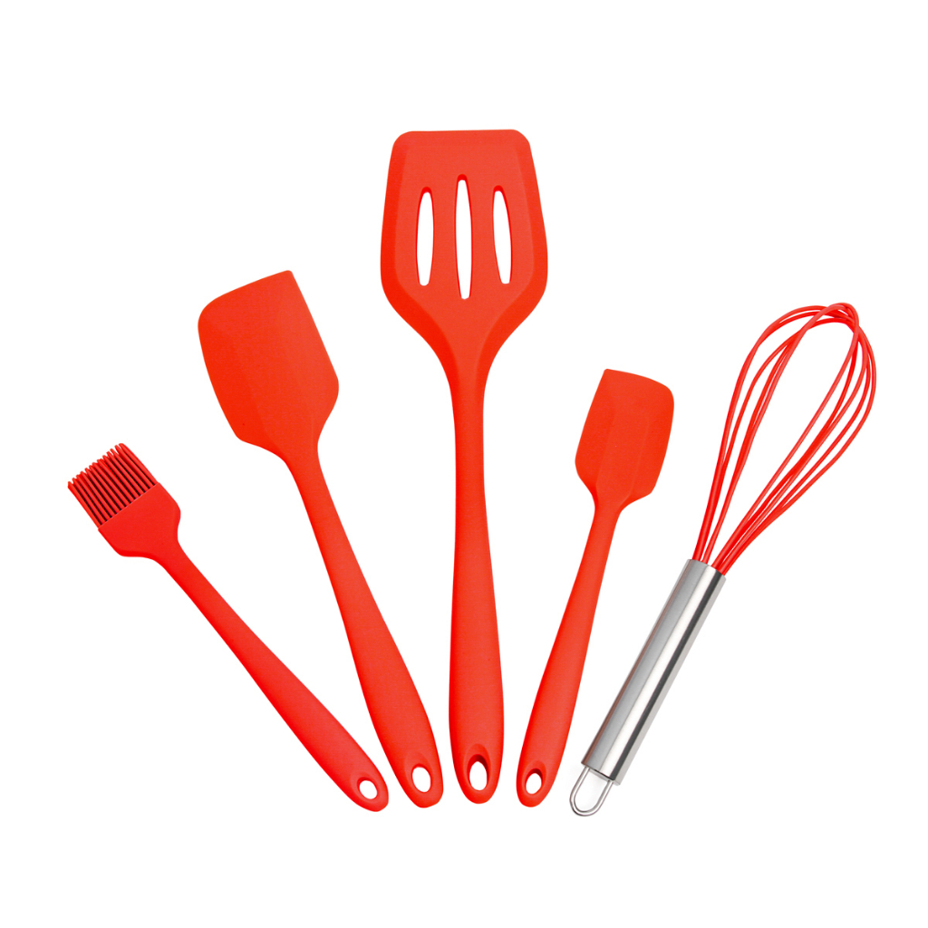 Kit 5 Peças Jogo De Utensílios Cozinha Em Silicone Servir Colher Concha Fouet Espátula