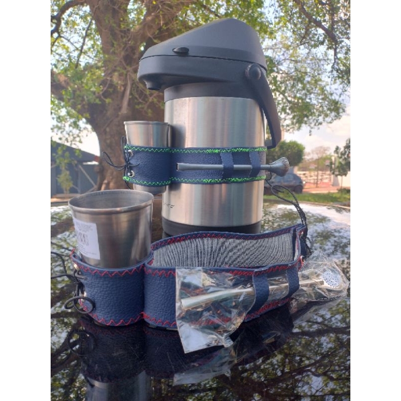 cinta tereré, cinta para garrafa térmica com suporte de copo/guampa e bomba, compatível garrafas de inox a vácuo de 2,5 a 5 LT