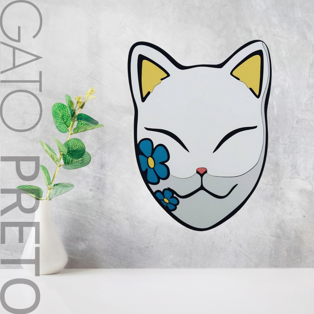 Placa Quadro Makomo Kimetsu No Yaiba Máscara Demon Slayer Anime Madeira MDF Colorido