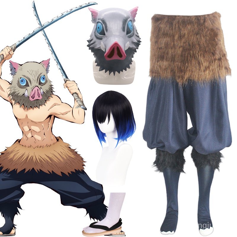 Hashibira Inosuke Cosplay Anime Demon Slayer Rengoku Kyoujurou Kimetsu No Yaiba Calças De Fantasia Sapatos De Porco Máscara De Silicone Preta
