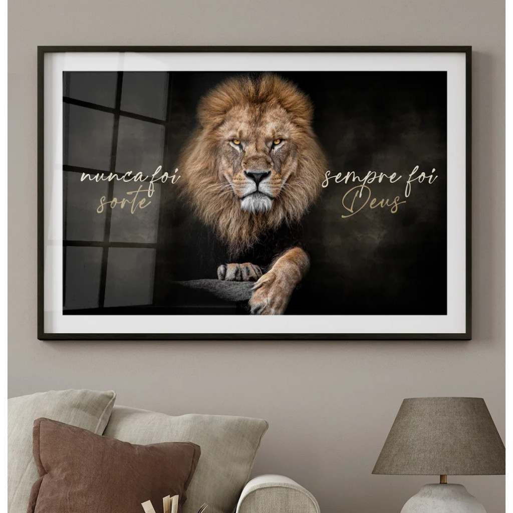 Quadro Decorativo 120x80cm Leão Judá Nunca Foi Sorte Sempre Foi Deus Borda Luxo Sala Quarto Casa Decoração De Parede Mdf Adesivo