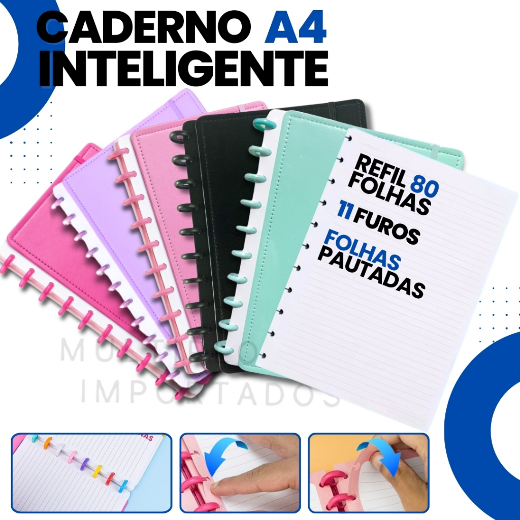 Kit Caderno Inteligente A4 Grande Ou Refil Discos Adicionar E Remover Folhas Liso Versátil Papelaria