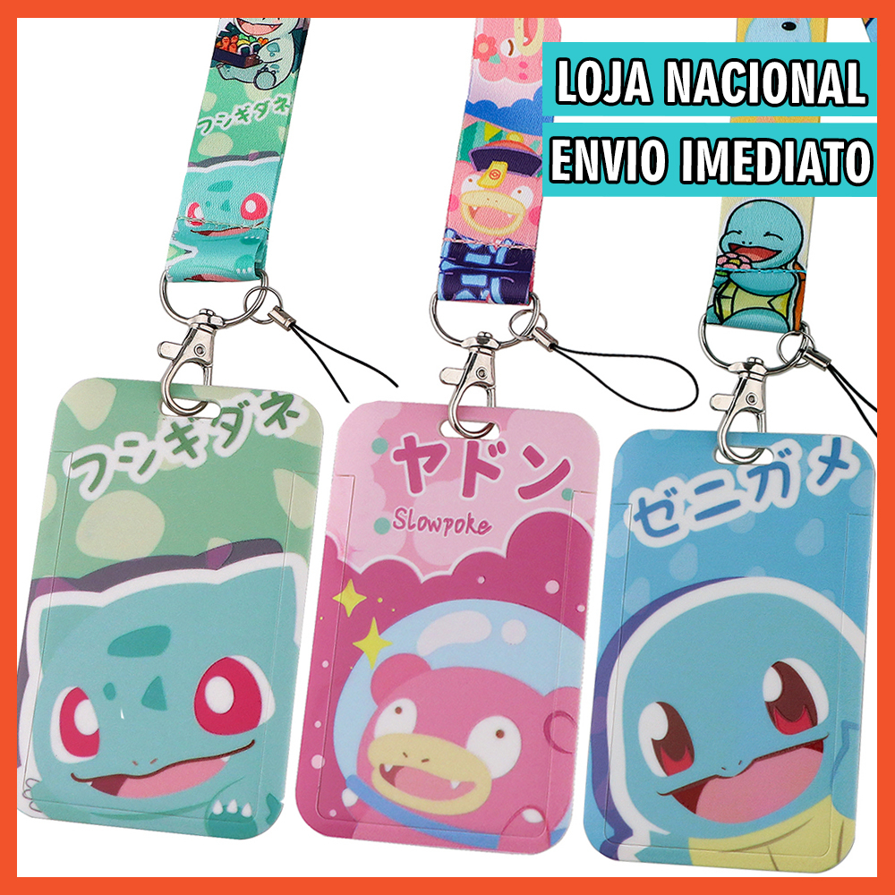 Pokemon - Bulbasauro - Slowpoke - Squirtle - Chaveiro com Cordão e Porta Crachá