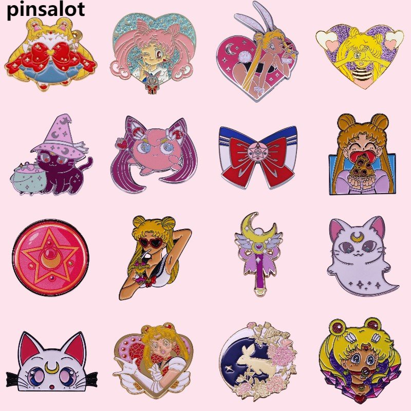 Marinheiro Lua Esmalte Duro Alfinetes Anime Menina Tsukino Usagi Broche Lapela Crachás Mochila Jóias De Desenho Animado Presente Para Amigos