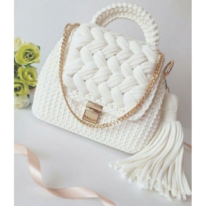 Bolsa em crochê fio de malha - Bolsa Glamour