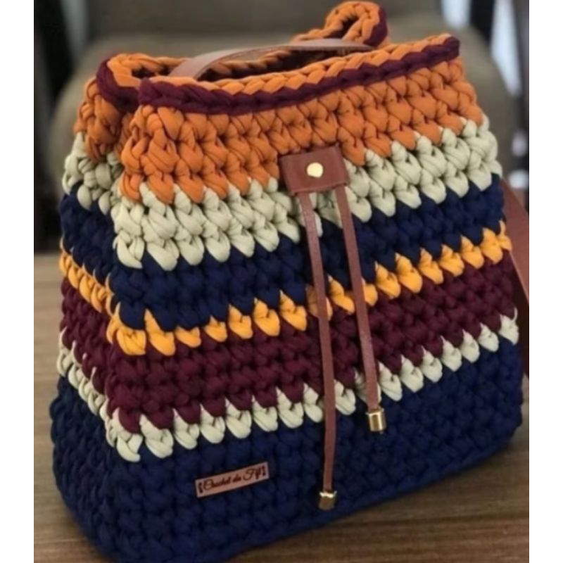 Bolsa de Ombro Multicolor Artesanal de Luxo em Fios de Malha