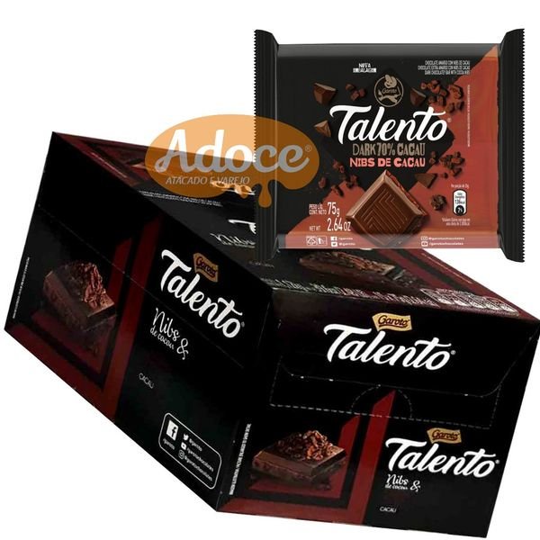 CHOCOLATE TALENTO DARK 15UNX75G Nibs de Cacau 70% Cacau