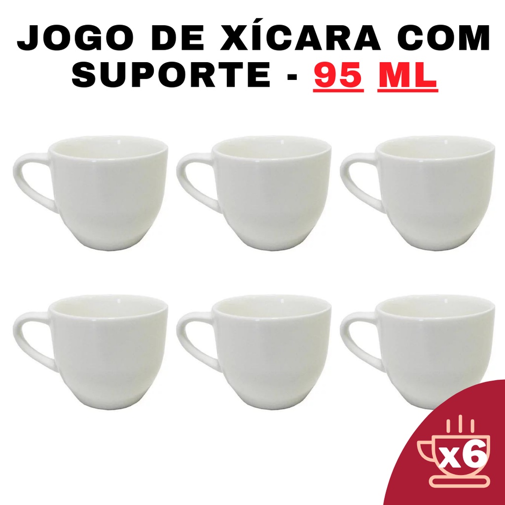 Kit 6 Xícaras em Porcelana Branca 95ml - Jogo de Chá e Café - Cerâmica - Design - Elegante - Resistente - Durável - Moderna - Clássica - Decorativa - Refeição - Mesa - Servir - Ergonômica - Lisa - Estampada - Brilhante - Cozinha - Utilidade - Presente