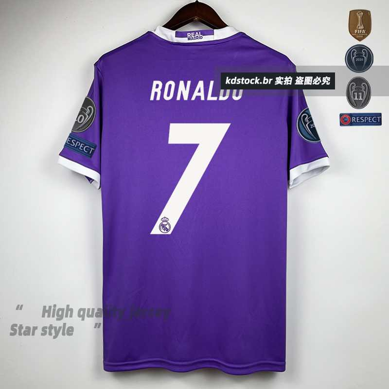 16-17 Temporada do Jogo Real Madrid Away Purple Jersey Ronaldo Cópia No. 7 Personalização do Campeonato de Futebol Jersey de Jersey