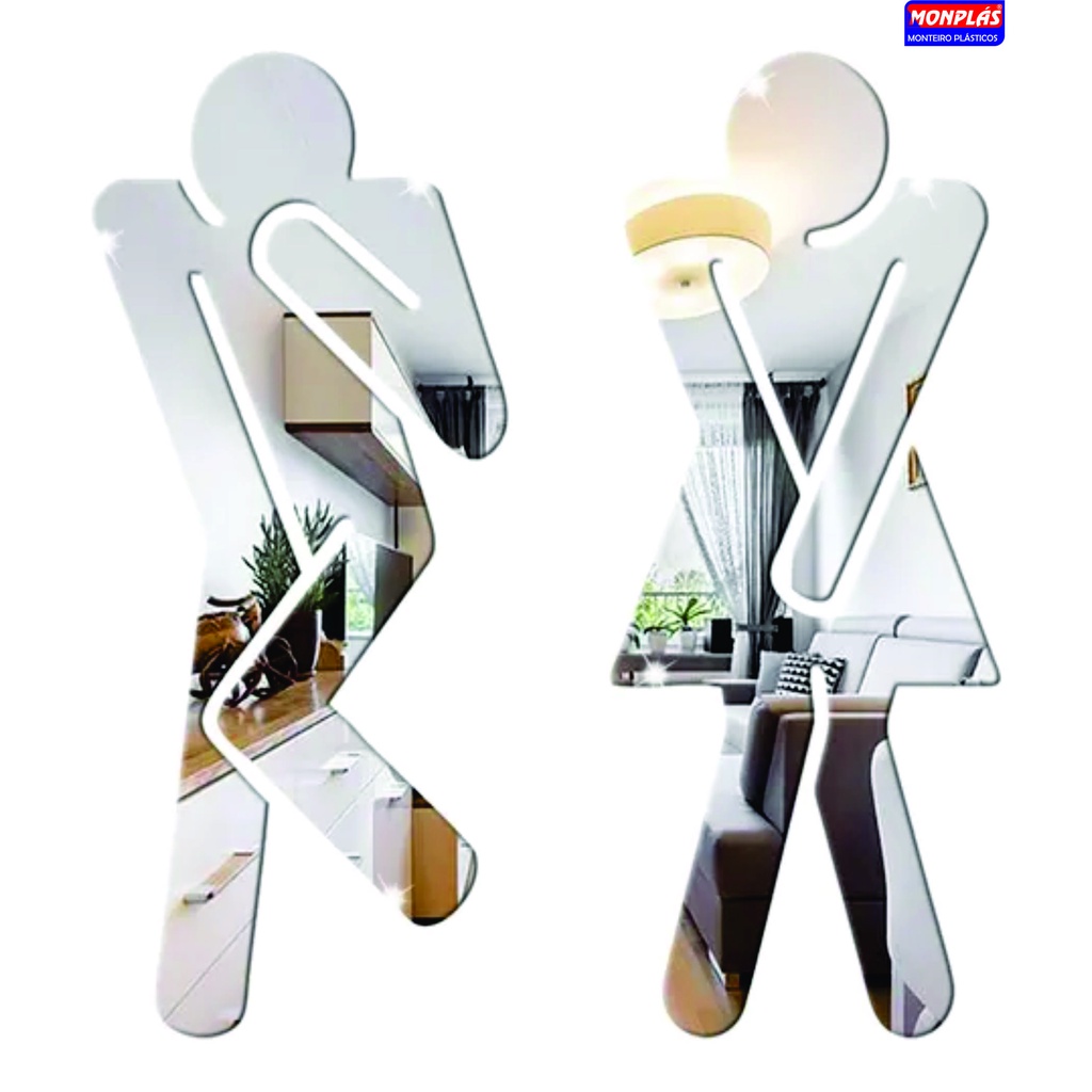 ESPELHO PLACA INDICATIVA DECORATIVA PARA BANHEIRO UNISEX CLASSICA EM ACRILICO ESPELHADO HOMEM 17x7,7cm MULHER 17x7,2cm