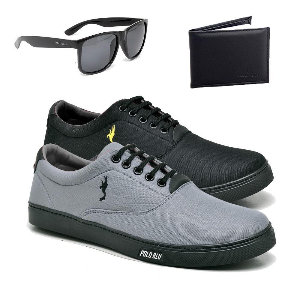Kit 2 Pares Tênis Sapatênis Masculino Polo Blu Cano Curto em Lona com Óculos e Carteira do 37 ao 46