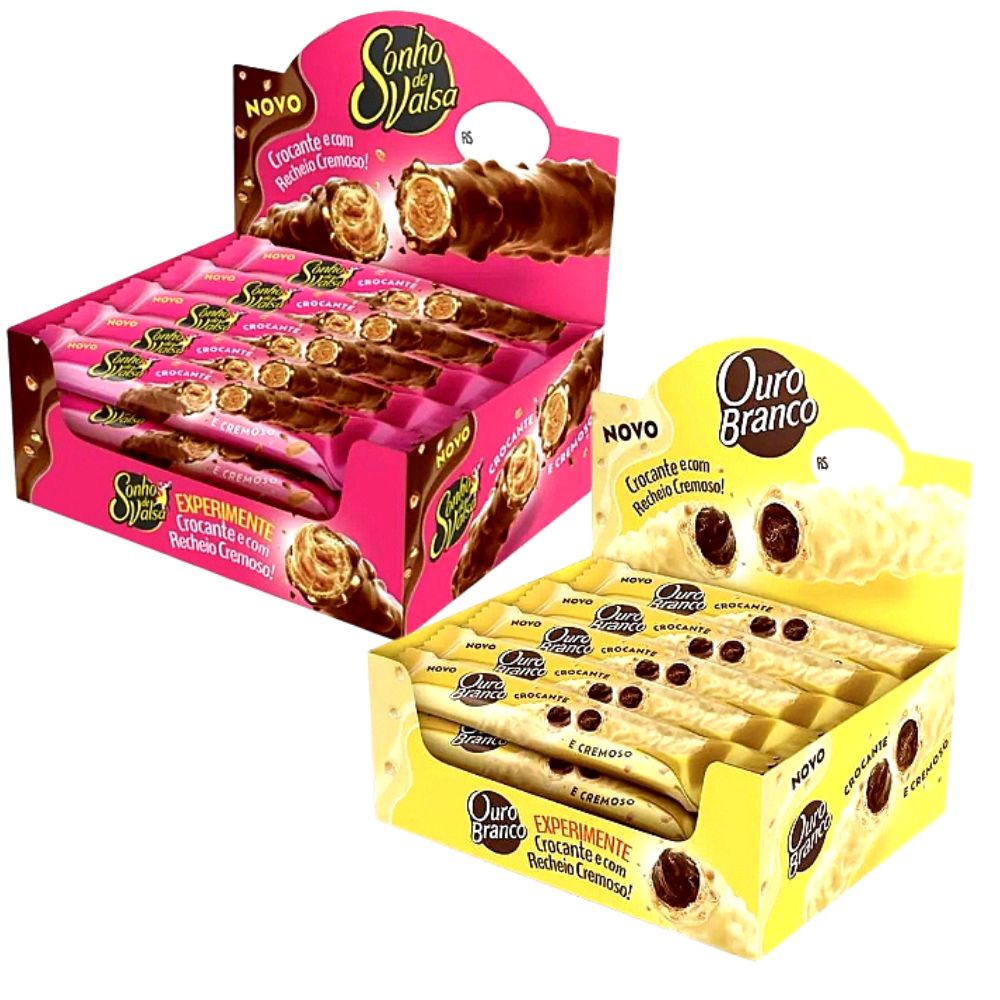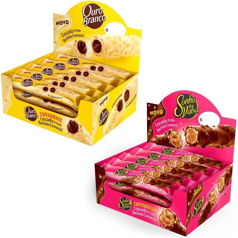 Caixa De Chocolate Stick Sonho De Valsa e Ouro Branco Wafer MONDELEZ cx 25g c/ 15un