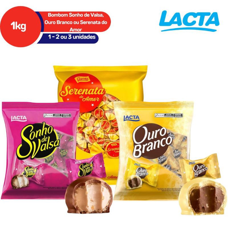 Chocolate Bombom Kit Sonho de Valsa 1kg | Ouro Branco 1Kg | Serenata do Amor 825g - LACTA