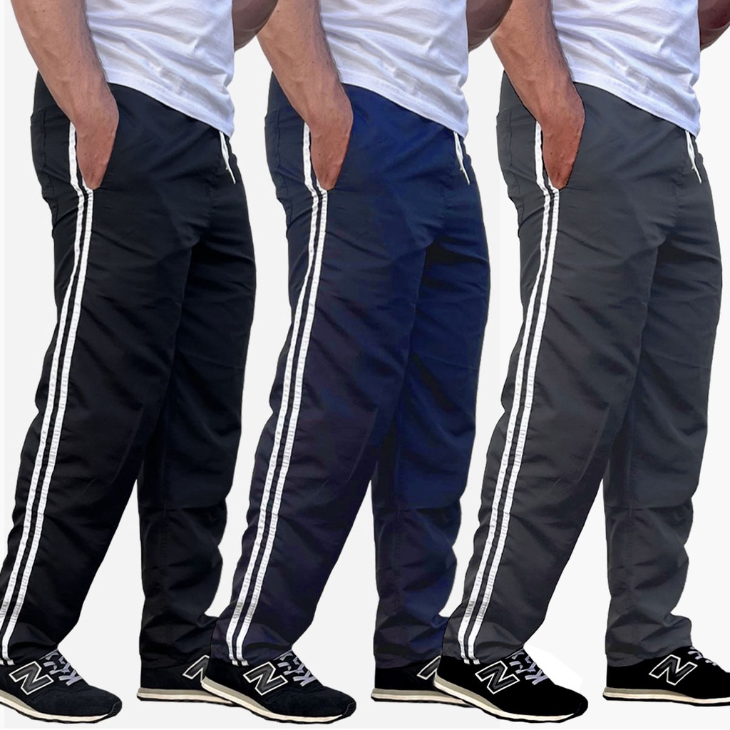 Kit 3 Calças Masculina Tactel Academia Esportiva Corrida 3 Bolsos 2 Listras