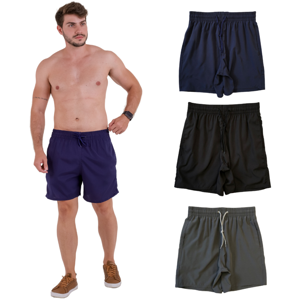 Kit 3 Bermuda Masculina Tactel Bolsos Academia Praia Corrida RAD