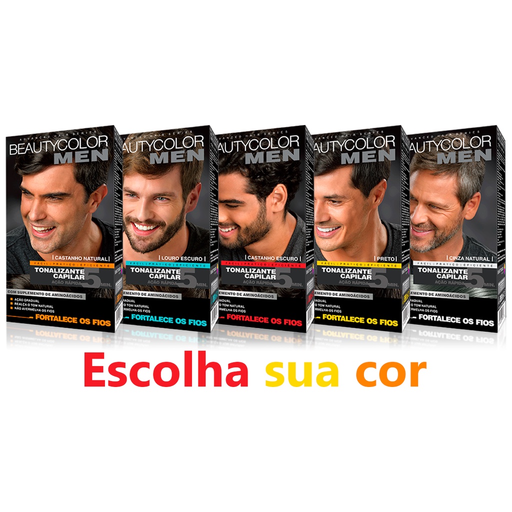Kit Tonalizante Masculino Beautycolor Men Sem Amonia Castanho Escuro Coloração Ação Rapida